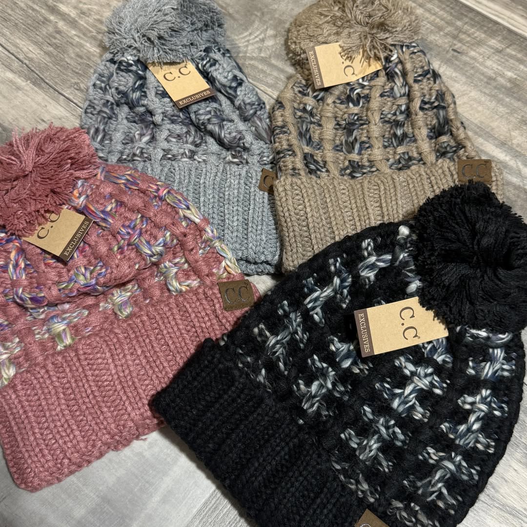 Be a little extra with this double slipstitch design on this brand new beanie with a yarn pom! One Size.
