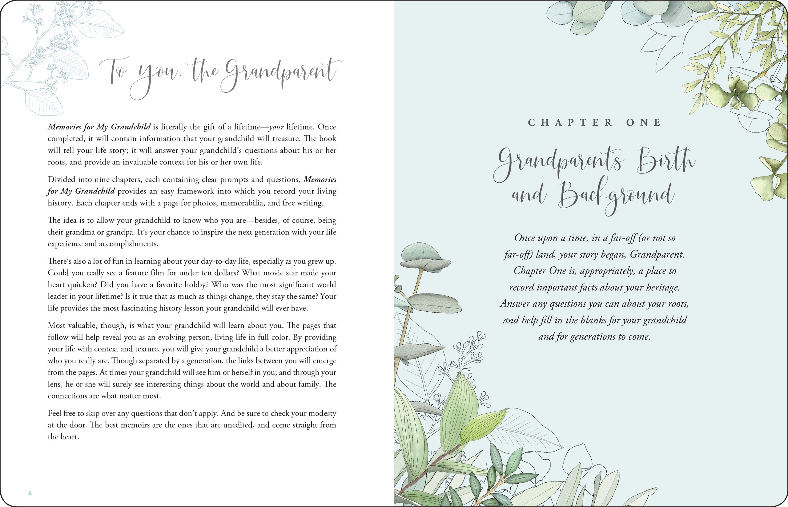 Deluxe Cloth-Covered Edition! Guided questions and prompts throughout help you write the story of your life for your grandchild. Beautiful cloth-covered memory book. The words ''Memories for My Grandchild: A Keepsake to Remember'' are stamped in silver foil on the cover. Thick, smooth-finish pages takes pen beautifully. 120 gsm paper is acid-free and of archival quality to help preserve your memories for years to come. Includes a ribbon bookmark with which to keep your place. A handy pocket inside the back cover holds notes, documents, and mementos you'd like to share with your grandchild. Keepsake volume measures 6-1/4'' wide x 8-1/4'' high. 96 pages.