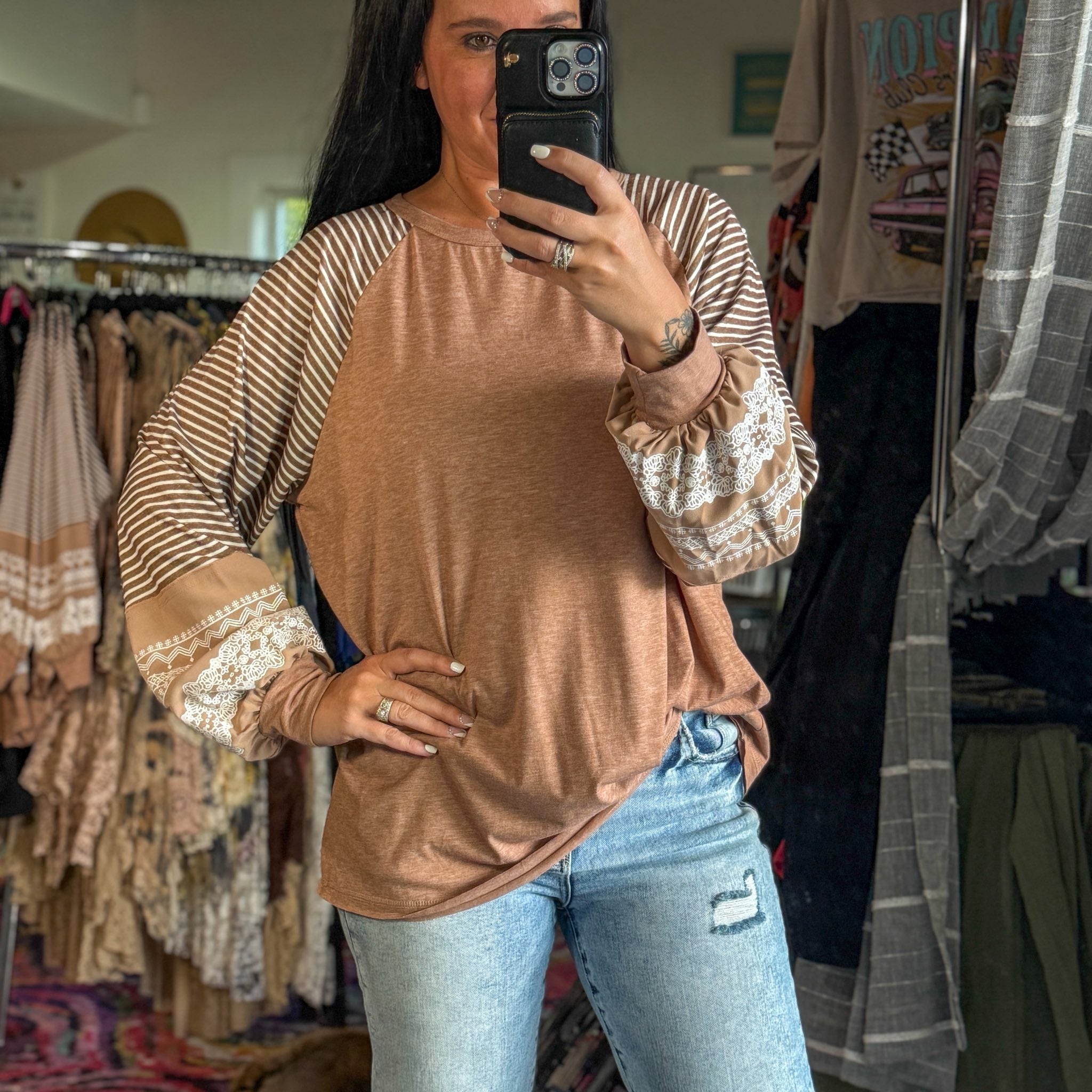 Brown Mixed Media Top