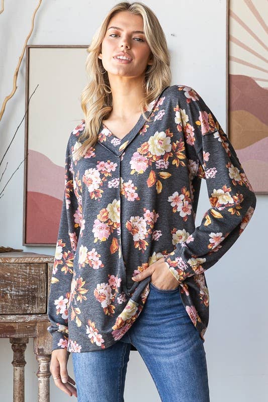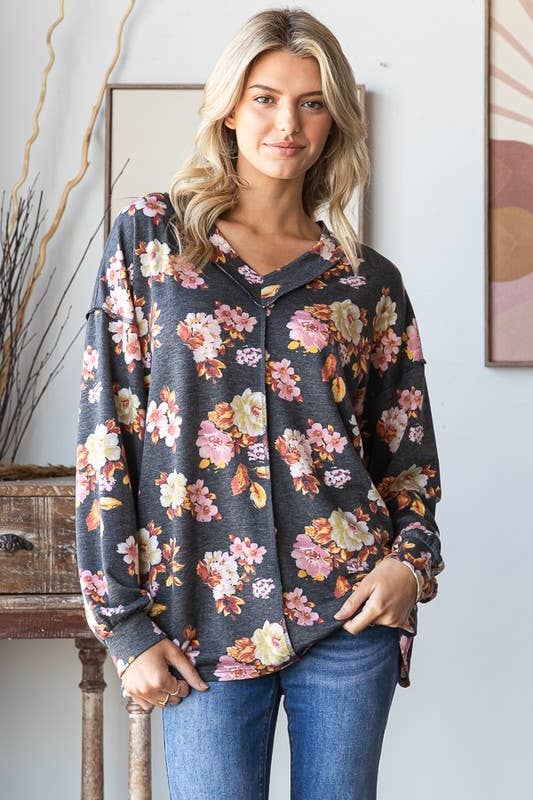 95% POLYESTER 5% SPANDEX LONG PUFF SLEEVE V ENCK FLORAL PRINT TOP WITH STITCH DETAIL MODEL SIZE: HEIGHT 5'7", BUST 34", WAIST 23", HIPS 34" WEARING SIZE: SMALL *The garment color may differ slightly upon arrival due to being taken with professional lighting also depending on what device you maybe using to shop*