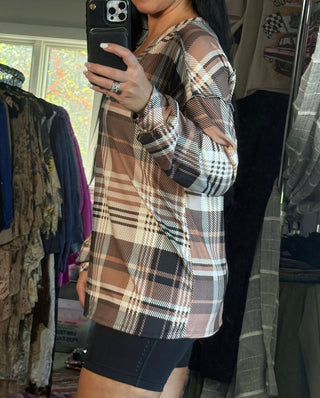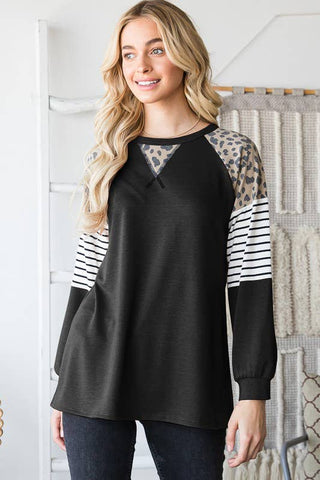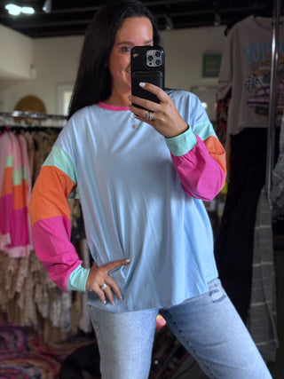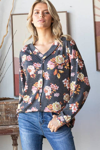 Square Collar Pit Strip Polished Solid Color Top Long Sleeve Buttons