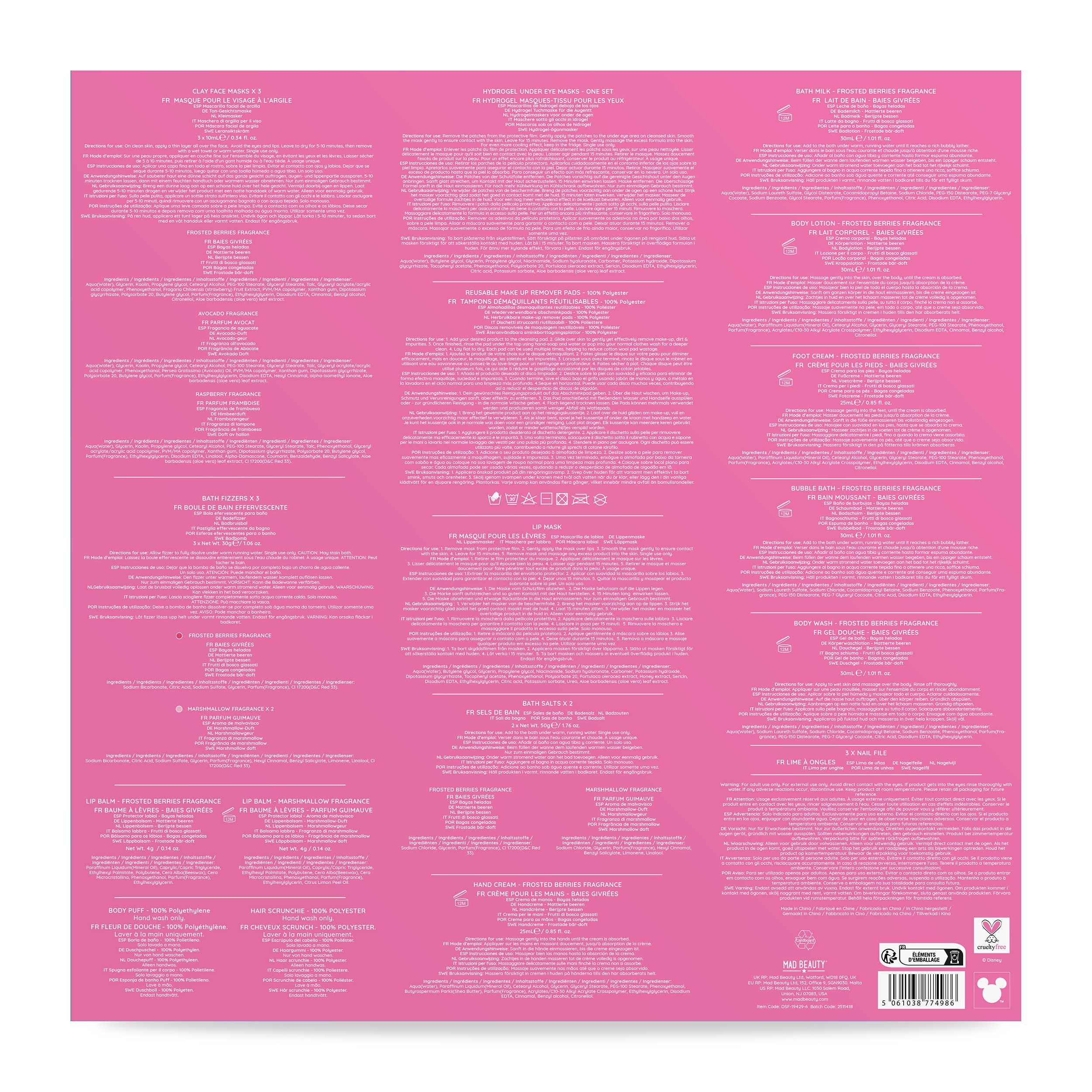 Packed with luxurious bath and beauty treats, this calendar is inspired by the lovable and mischievous Stitch. Prepare to experience the ultimate relaxation and rejuvenation with this Stitchmas 24-day advent calendar! Each day of December, unveil a surprise that will take you one step closer to pampering bliss. Set includes: foot lotion, bubble bath, clay masks, bath milk, bath salts, bath fizzers, lip balms, body wash, body lotion, hydrogel lip and under eye masks, nail files, a body exfoliator, cleansing pad and a scrunchie.