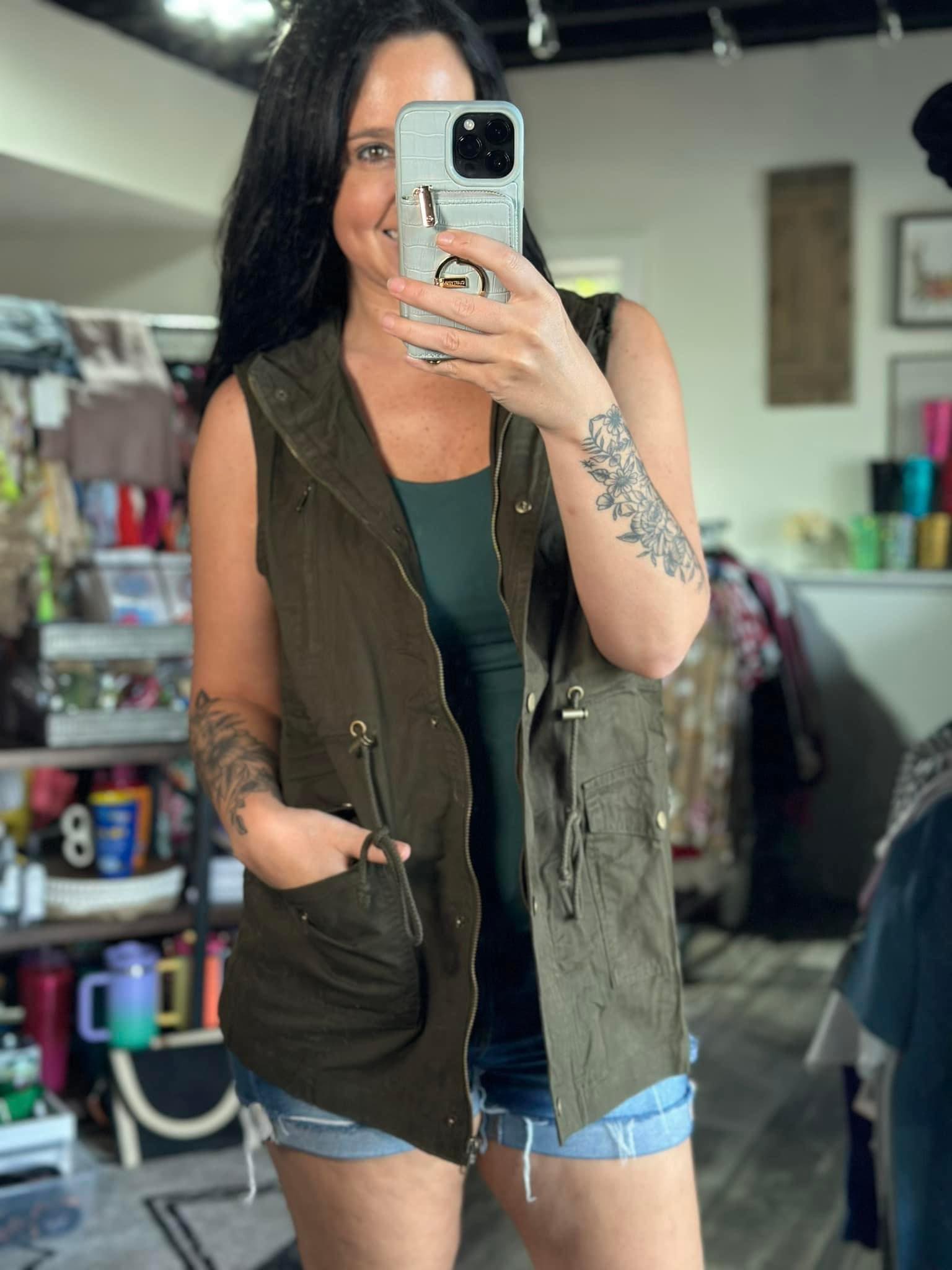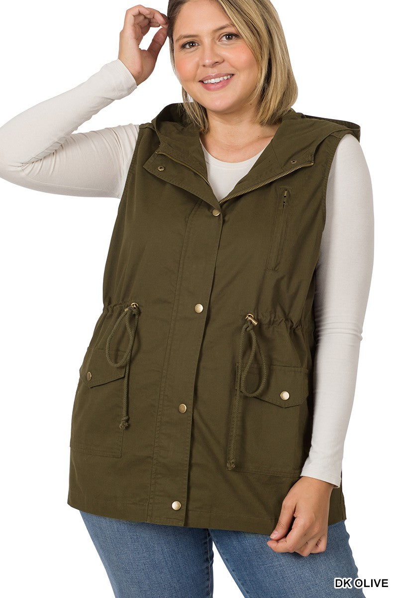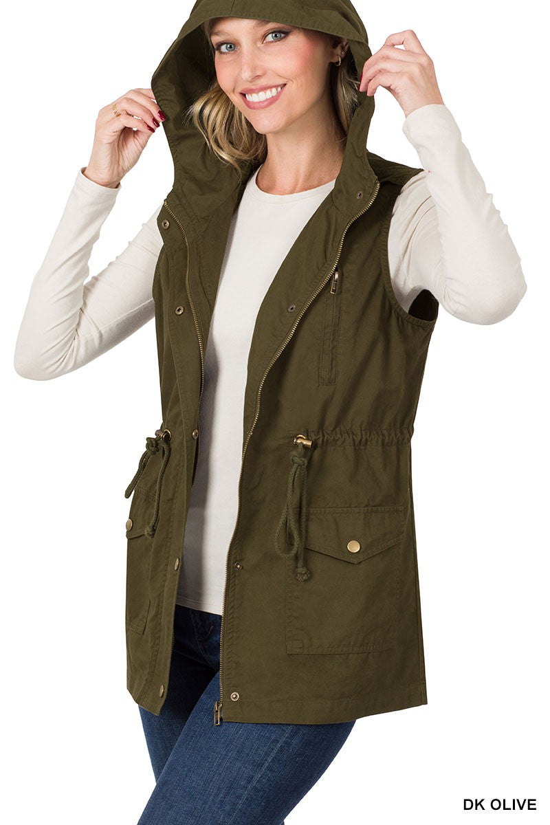 DRAWSTRING WAIST MILITARY HOODIE VEST