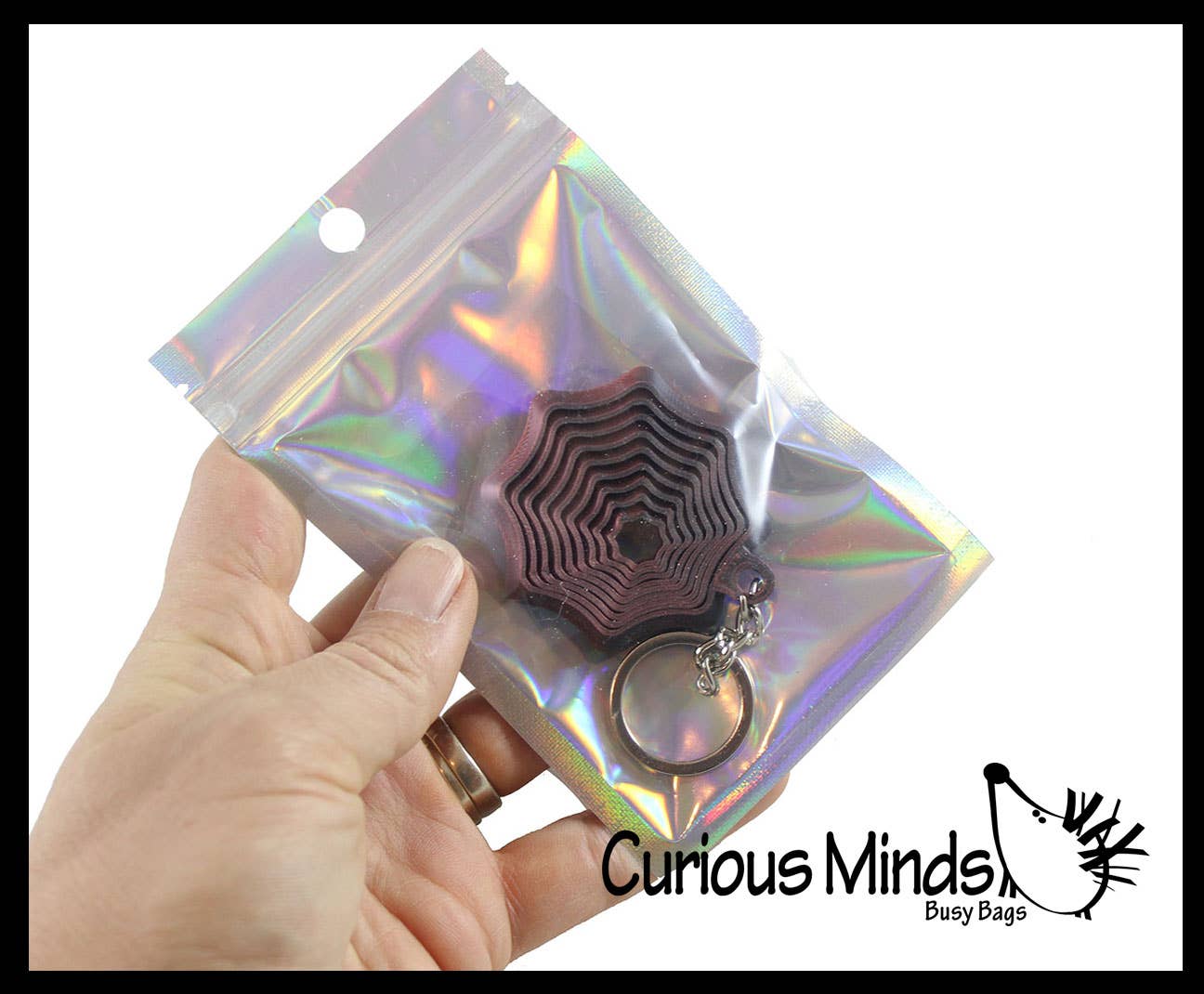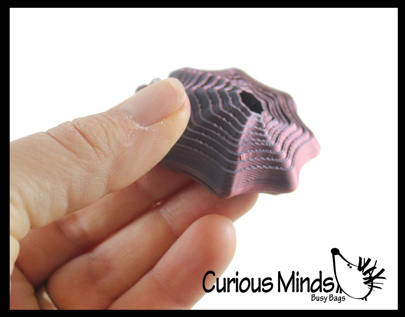 1 RANDOM COLOR - The magic maze is a 3D printed spider web shaped unique fidget toy. It is a shape that is repeated and gets smaller. These nesting shapes are connected and when you tip and turn them they drop down in a telescoping pattern. They make a satisfying sound as they expand down and back to their original shape. They are 1.75".