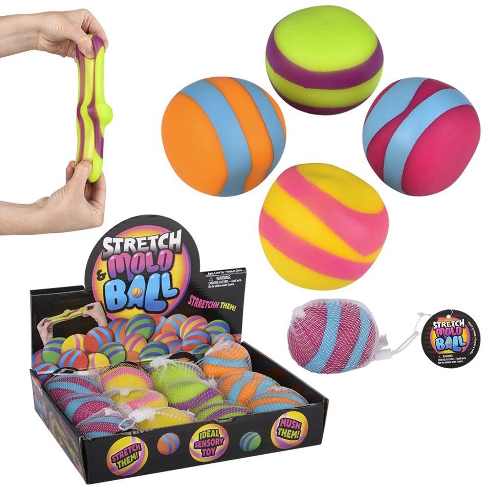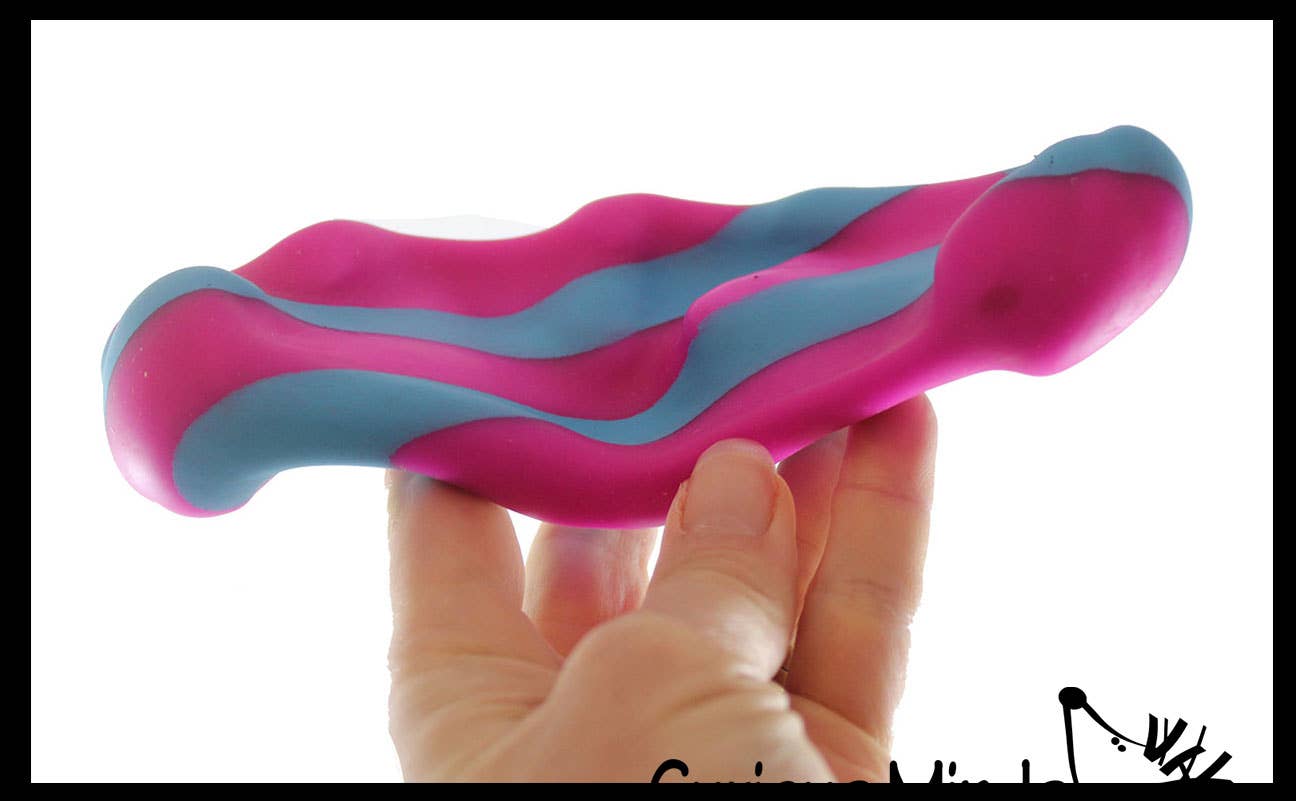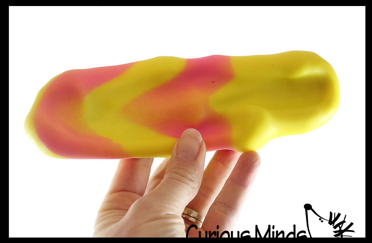 INCLUDES 1 RANDOM COLOR BALL - This stress toy is so fun to manipulate. This ball is filled with a fine granular sand filling surrounded by a soft and stretchy silicone shell. This makes the ball moldable and irresistible since you can squeeze, poke, pull, stretch and bend it, it will stay in that position. Smash it flat and bring it back to its original shape. The 2.5" ball makes a loud crunchy sound when you squeeze it making it a fun auditory toy.