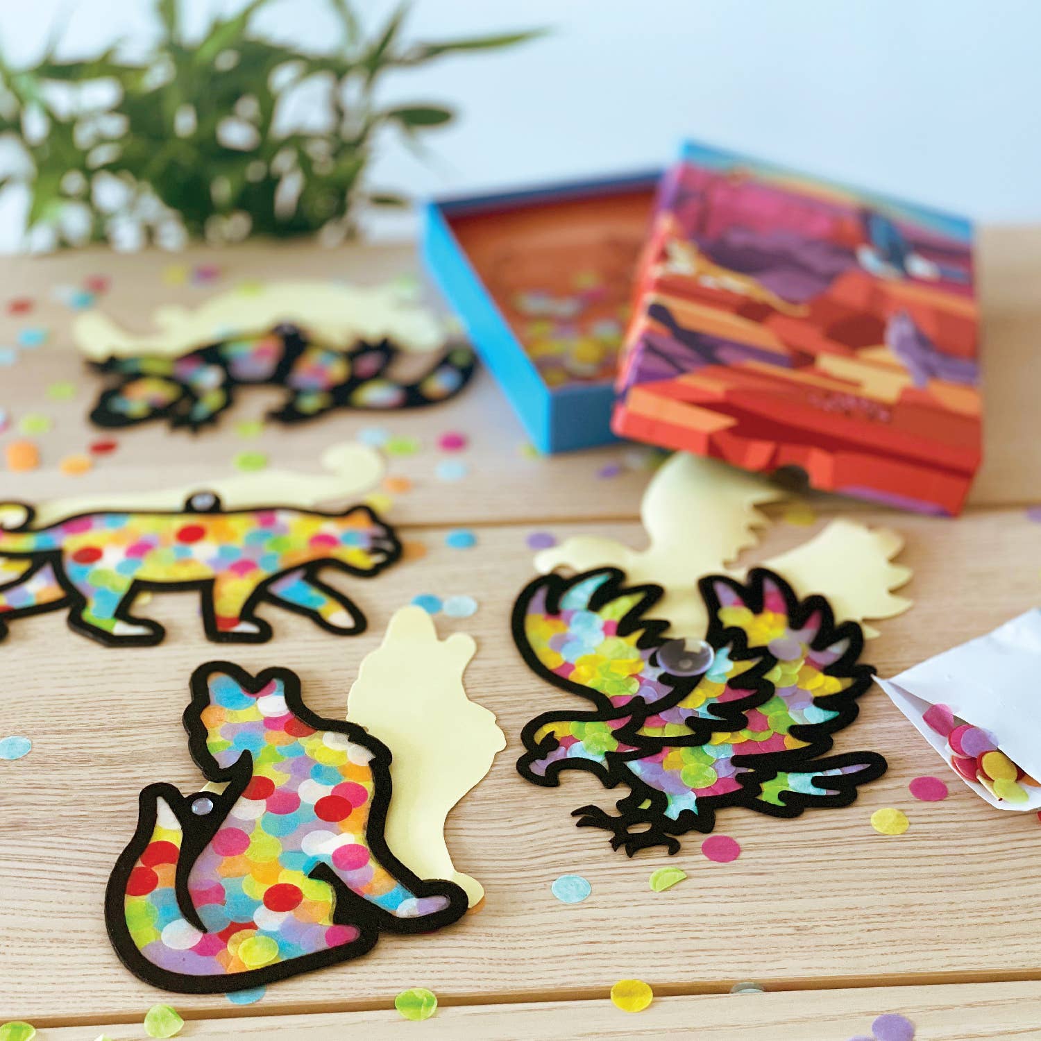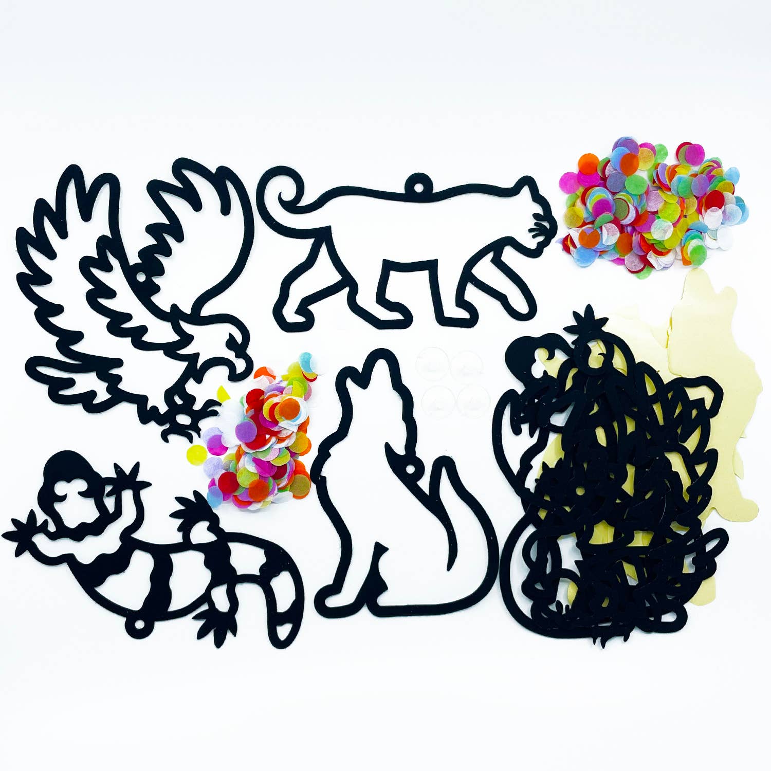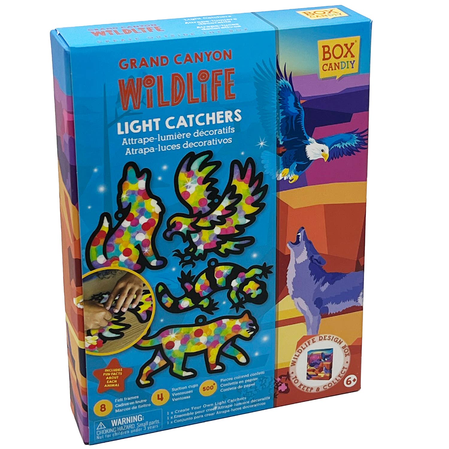 Explore the incredible wildlife found in the Grand Canyon area with this engaging craft set! Use the felt frames and colored tissue confetti to create light catchers featuring four native animals: a bald eagle, mountain lion, coyote and Gila monster. Attach them to a window (or near a light source) with the suction cups. Watch the light shine through the animal shapes and feel transported to the Grand Canyon!