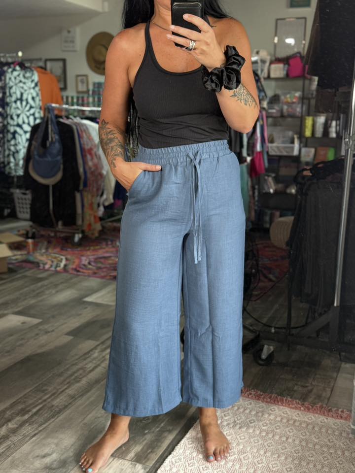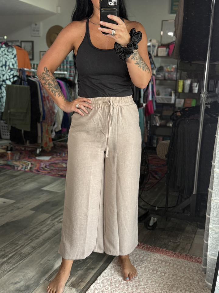 WOVEN CREPE ELASTIC BAND WAIST CROPPED PANTS