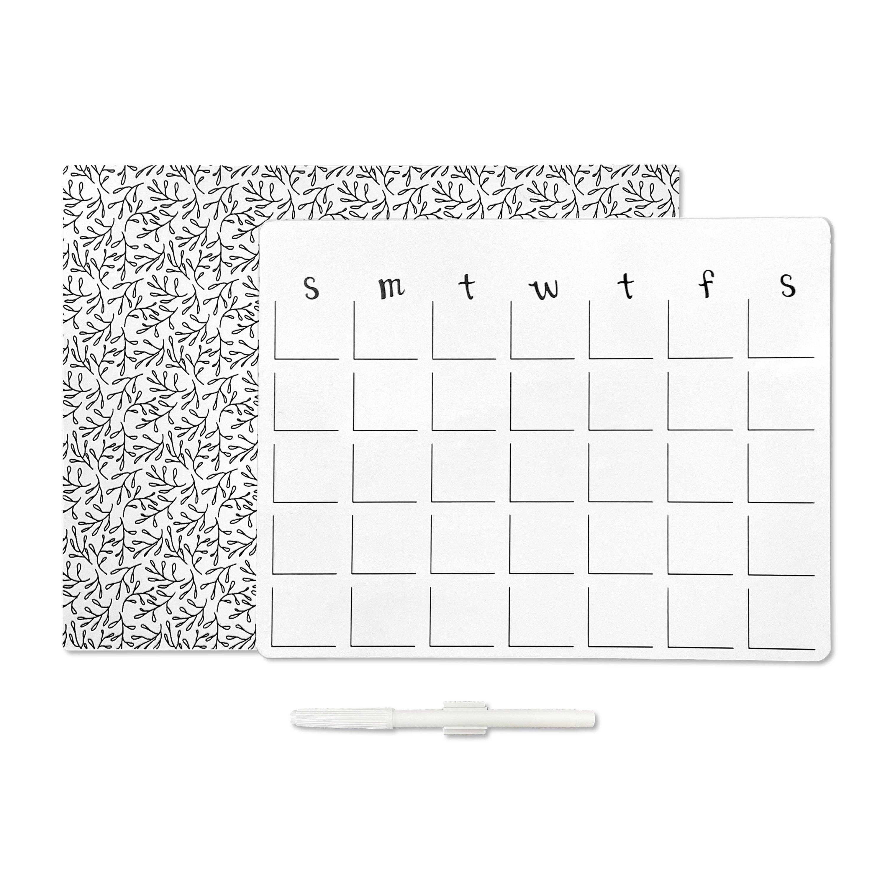 * Dry Erase Calendar measures 8.5" x 11" and has magnetic strips on the back to hold it in place.