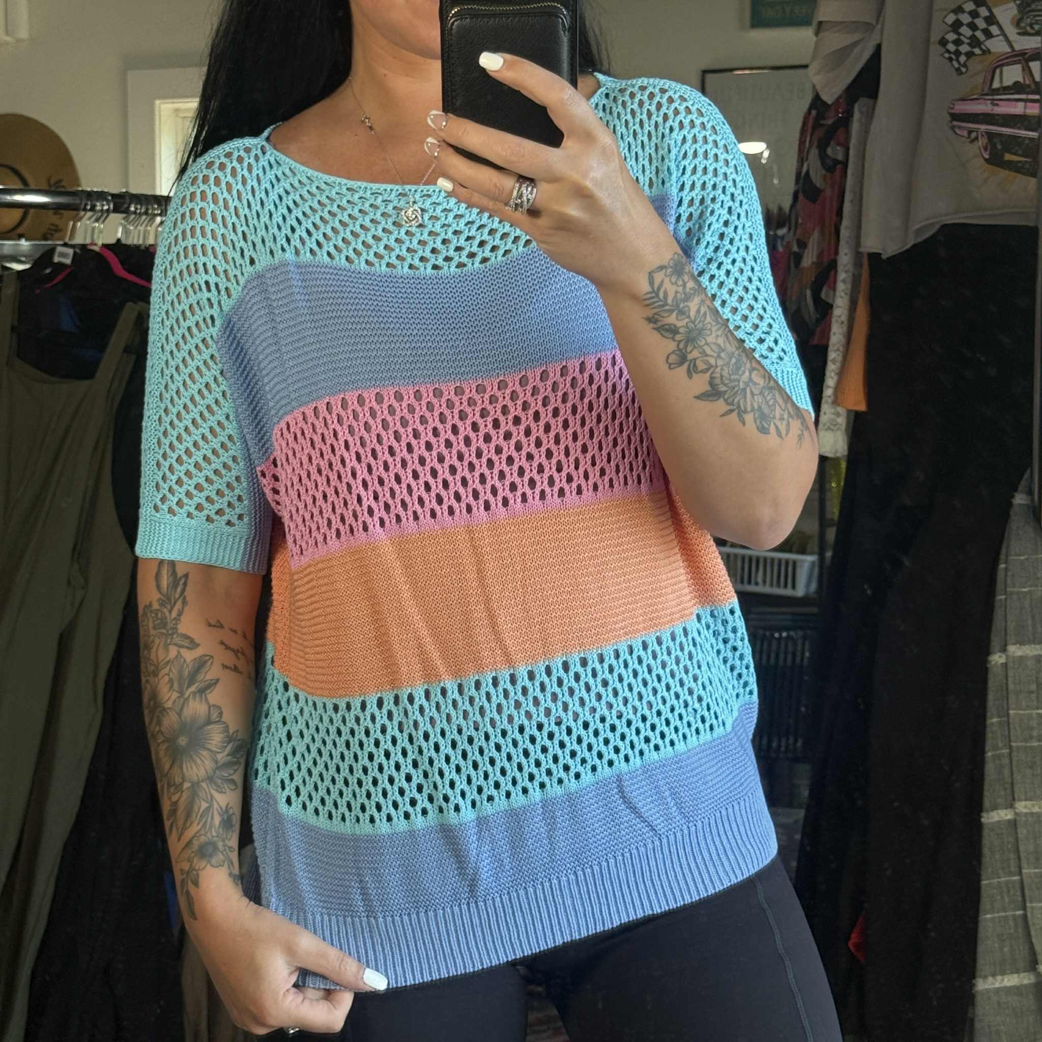 True To Size - Open Knit Short Sleeve Top