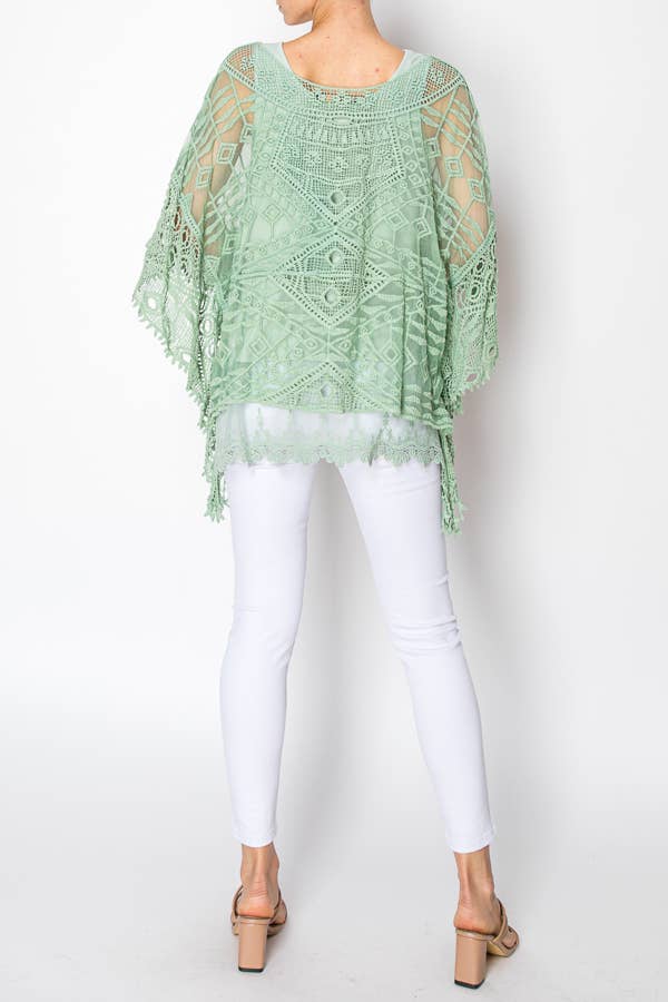 Ornate Crochet Poncho Top With Geometric Embroidered Details