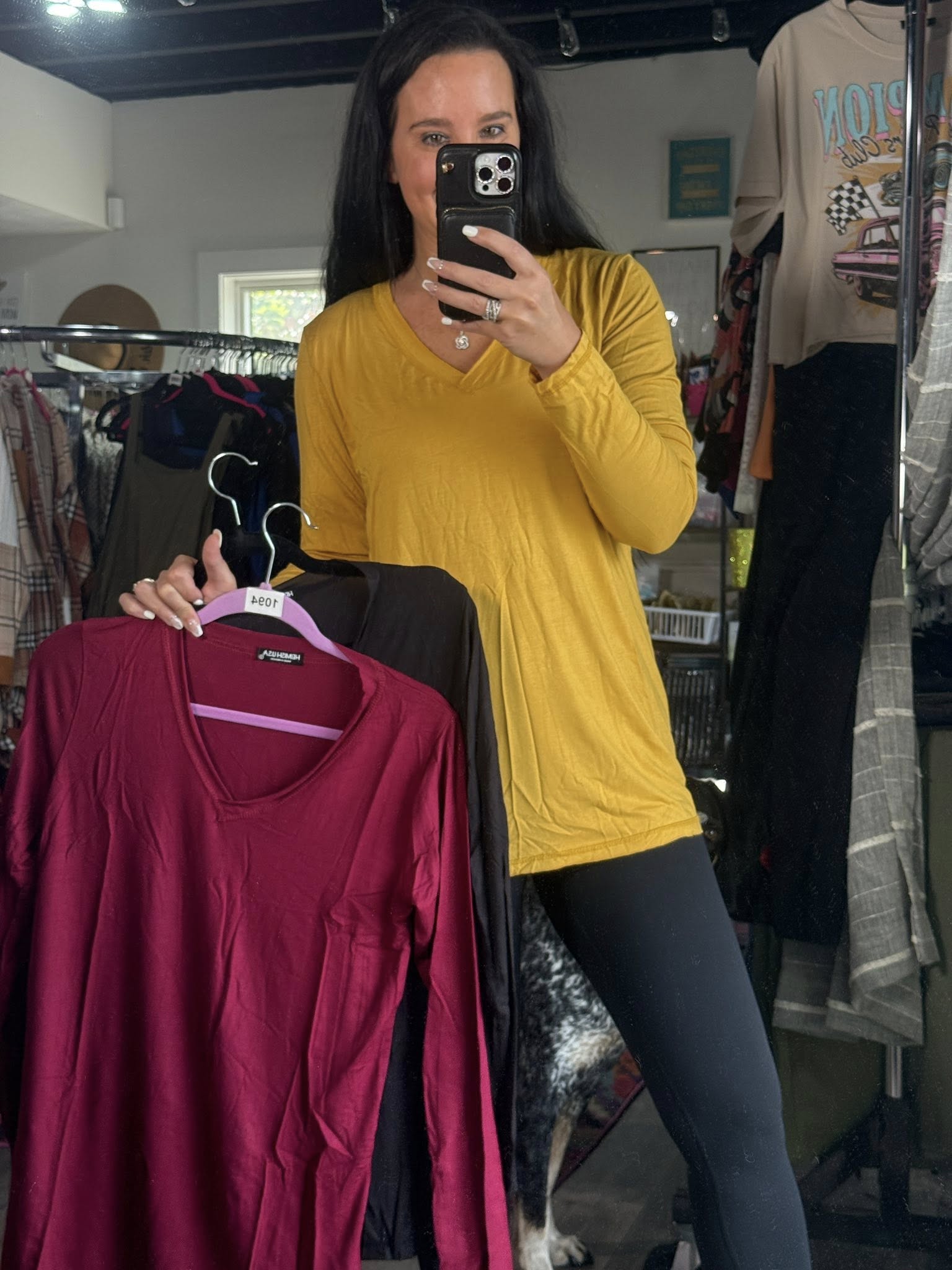 95% RAYON 5% SPANDEX LONG SLEEVE V NECK SOLID TOP WITH STITCH DETAIL MODEL SIZE: HEIGHT 5'8"", BUST 32"", WAIST 23"", HIPS 34"" WEARING SIZE: SMALL *The garment color may differ slightly upon arrival due to being taken with professional lighting also depending on what device you maybe using to shop*