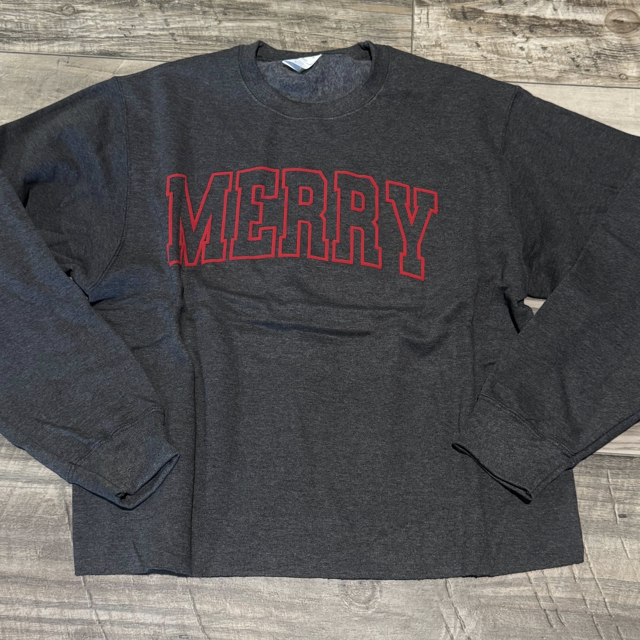 Merry Cropped Graphic Crewneck on Dark Heather Gray